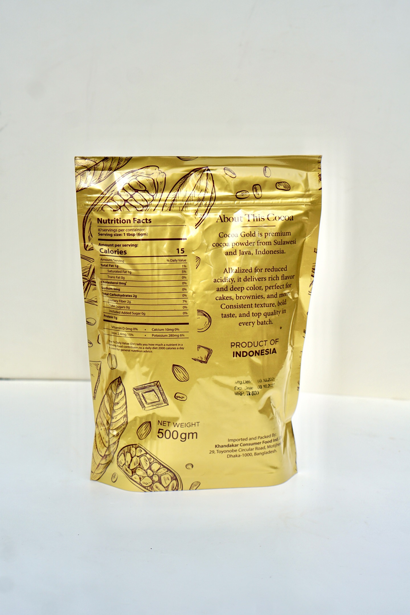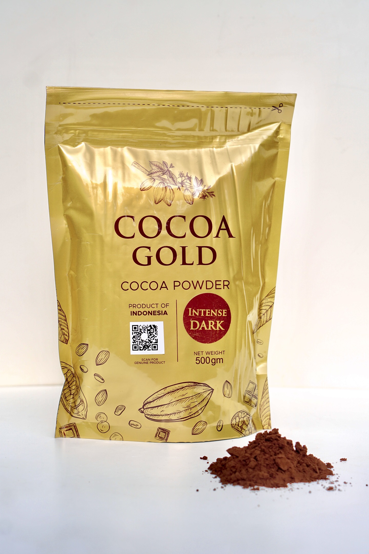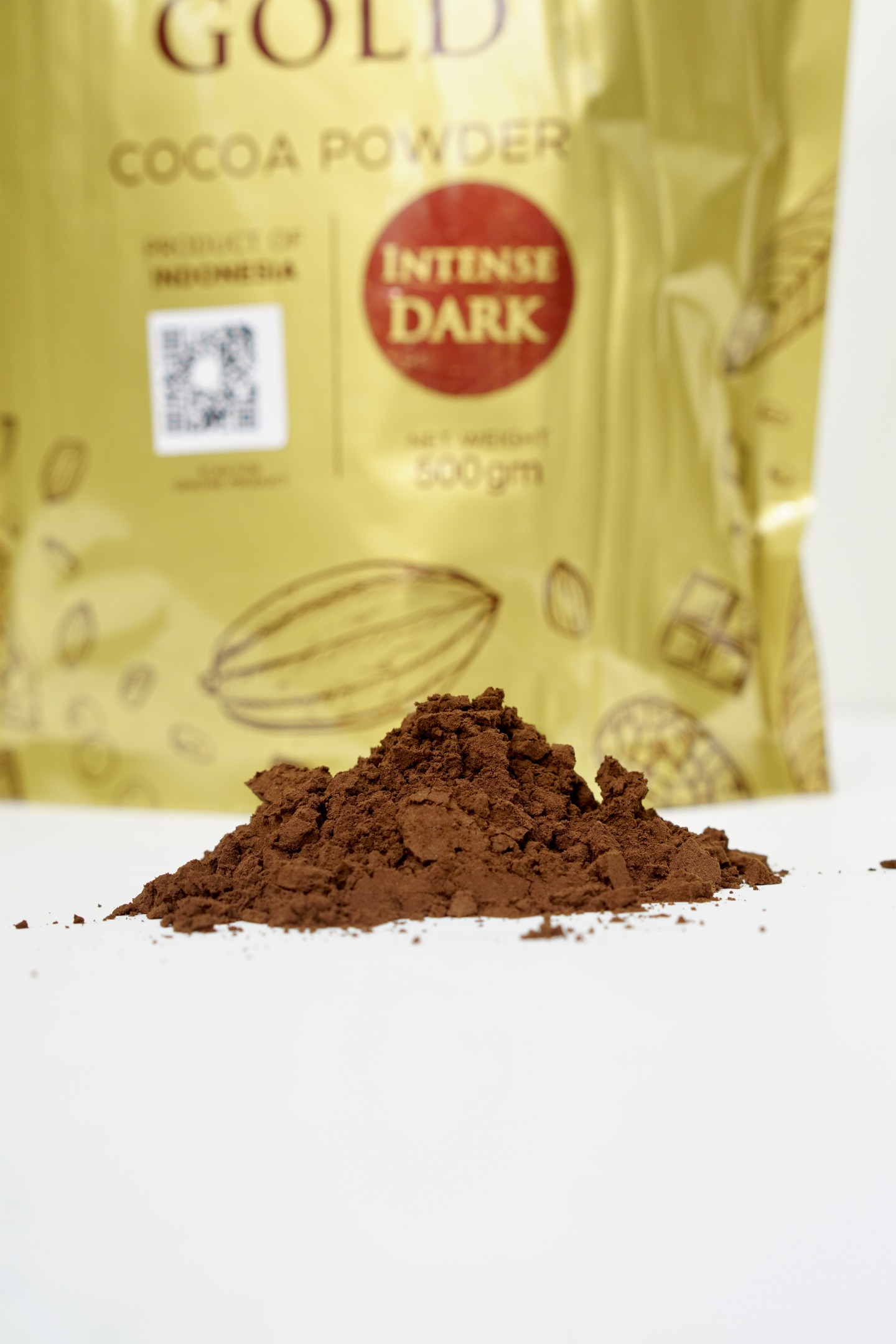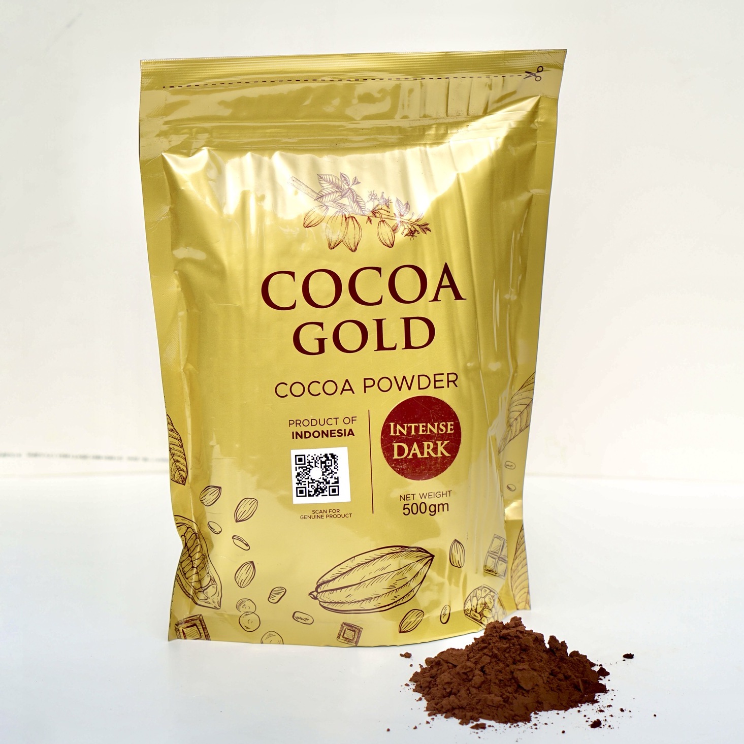 Cocoa Gold Intense Dare Premium — a rich, dark alkalised cocoa powder delivering deep color, bold aroma, and refined chocolate intensity. (Size 500gm)